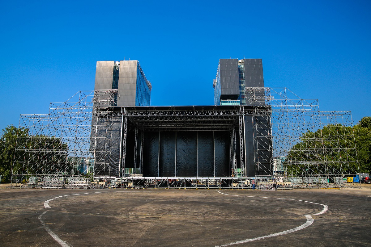 The MR5 roof was built on MT2 towers that reach up to 12.5 metres in height and are made of robust Truss M390 QTKT. The basic structure for the frame is made up of M950 RTTH construction. In addition, the Truss M950 Fold Series was used in the roof, which can be easily folded and unfolded to save space during transport or storage. The roof has a large 31 x 18-meter footprint and a high load capacity of 24,000 kg UDL, allowing for heavy sound and lighting systems to be installed seamlessly.