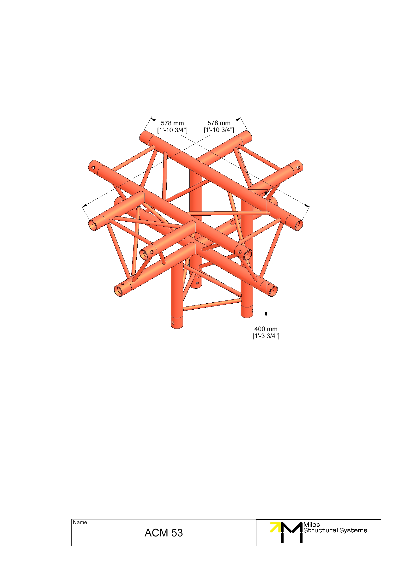 ACM53|5way M222 trio 5way cross piece truss corner down leg apex down 5-way cross down leg apex down