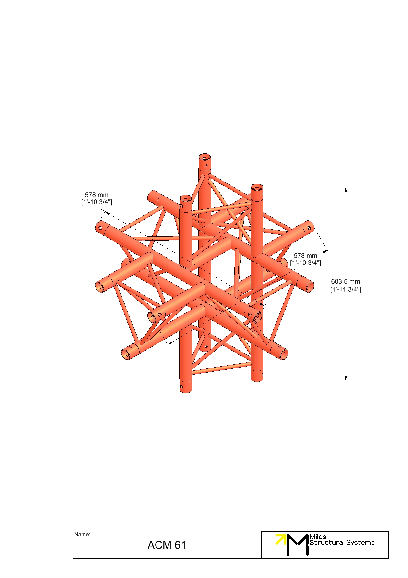 6-way tee piece. Compatible with M222 Trio conical truss. The M222 system offers outstanding weight loading capabilities despite its small size and light weight