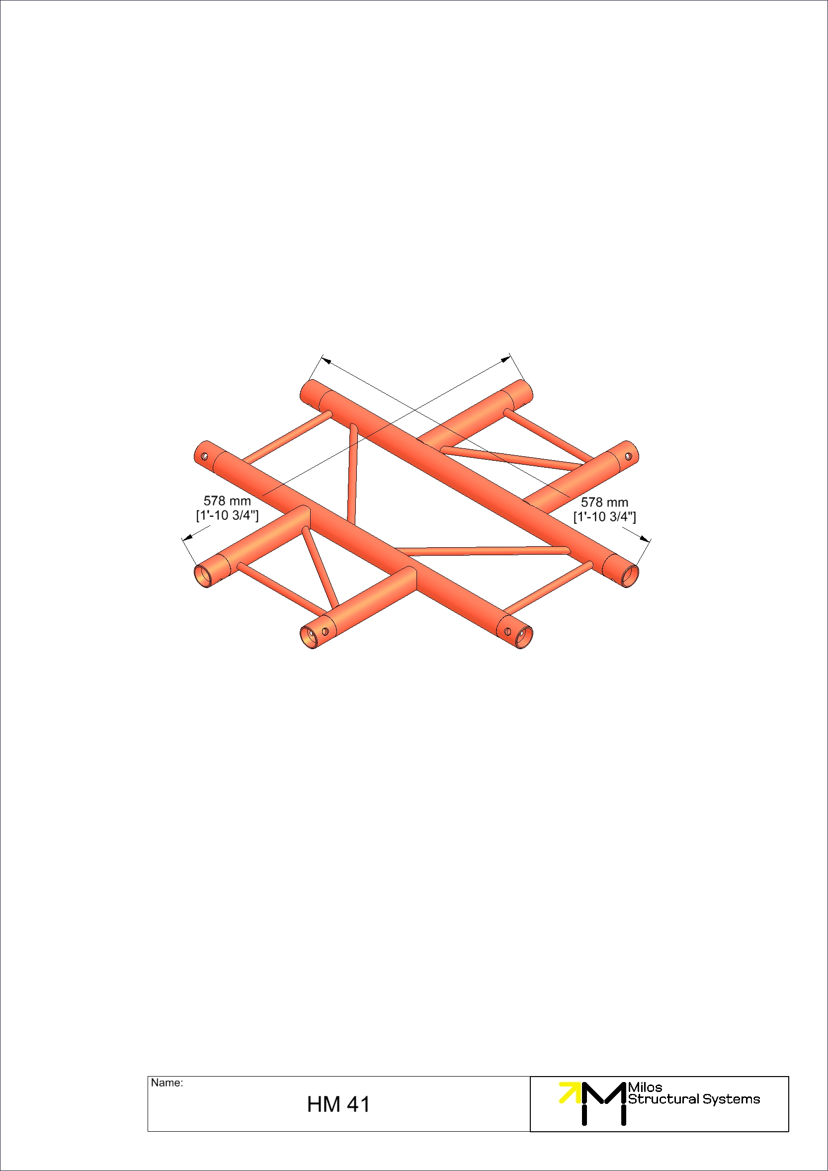 4-way horizontal cross piece. Compatible with M222 Duo conical truss. The M222 system offers outstanding weight loading capabilities despite its small size and light weight