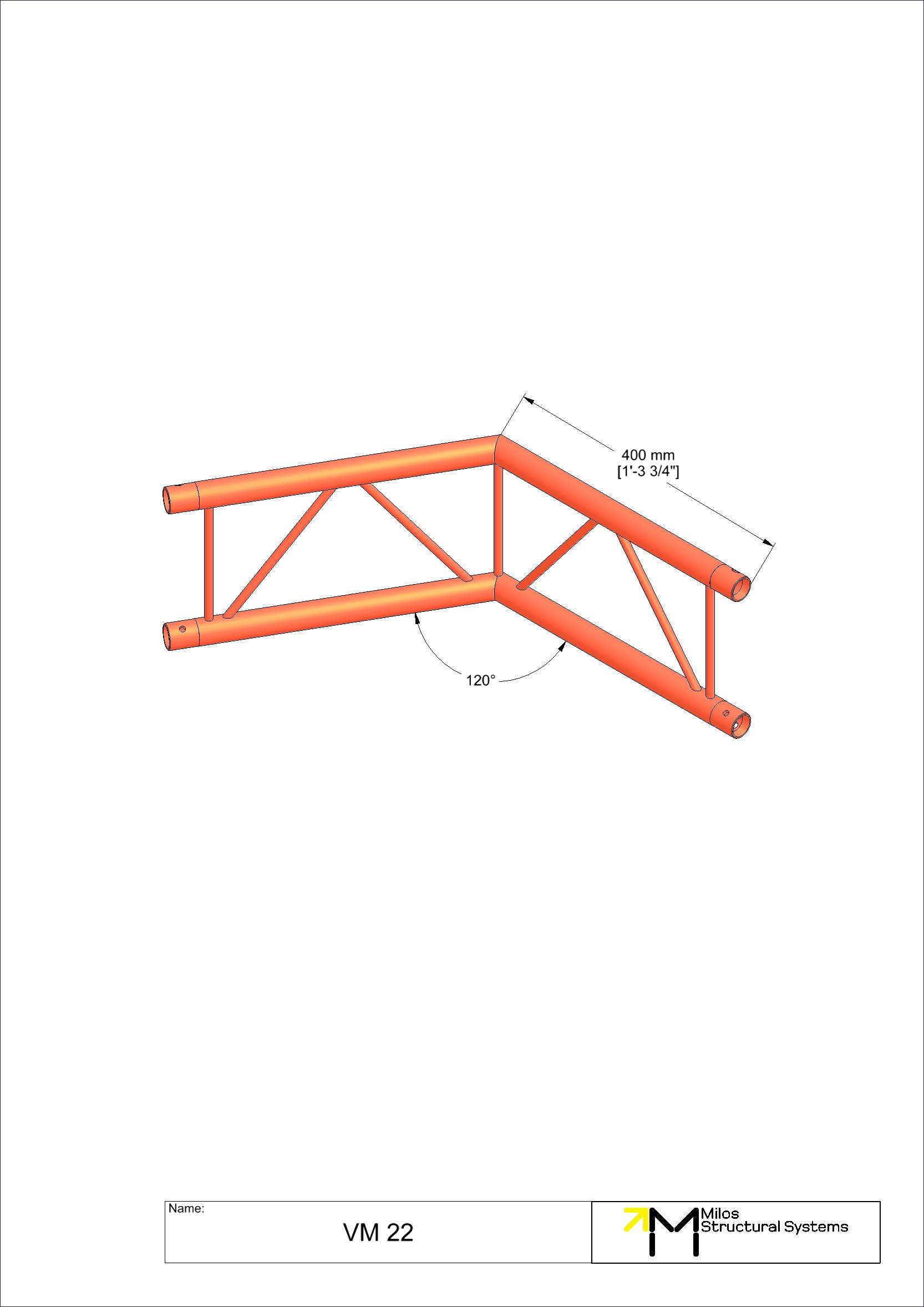 2-way vertical corner 120°. Compatible with M222 Duo conical truss. The M222 system offers outstanding weight loading capabilities despite its small size and light weight