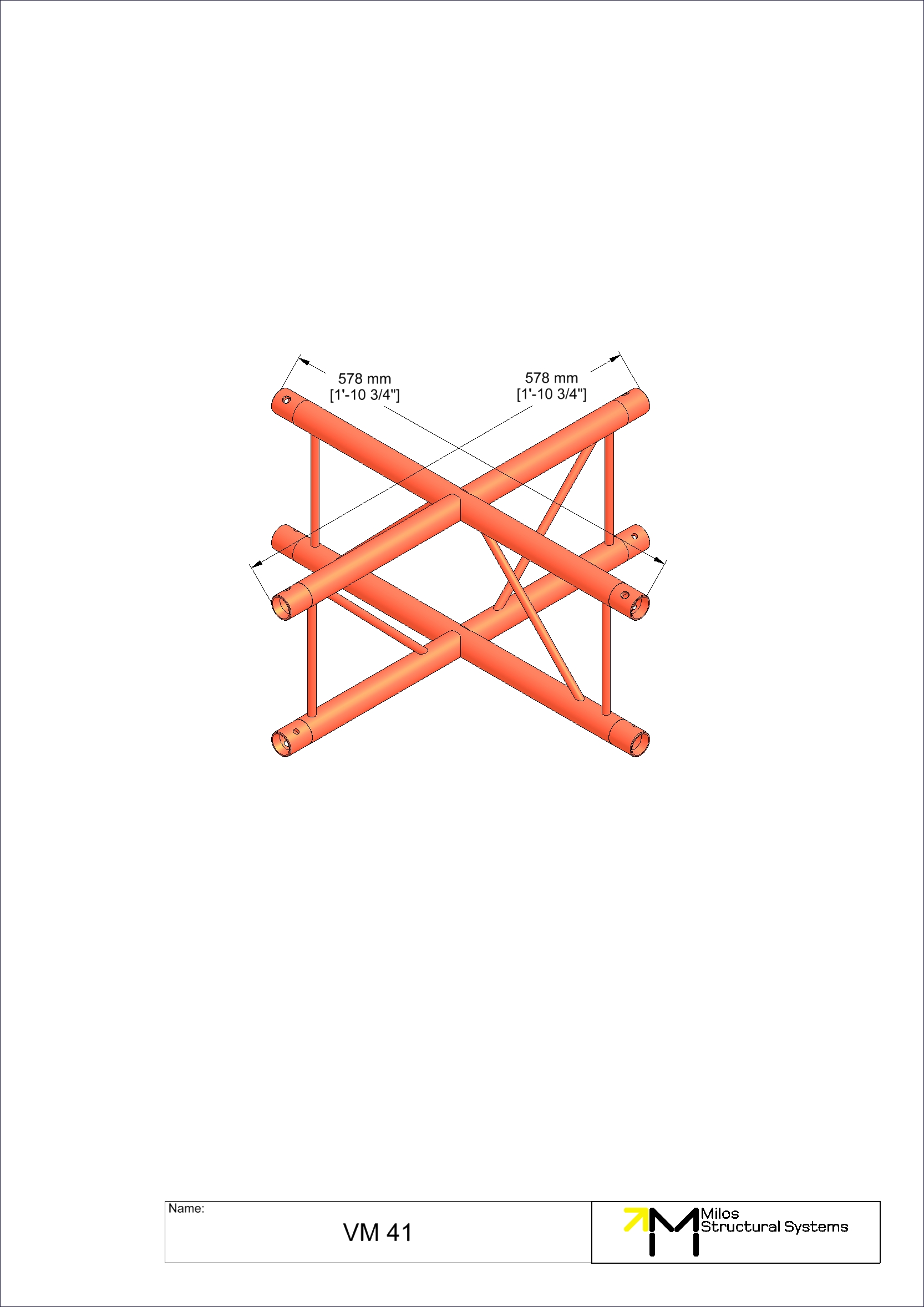 4-way vertical cross piece. Compatible with M222 Duo conical truss. The M222 system offers outstanding weight loading capabilities despite its small size and light weight