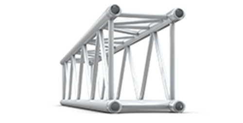 This rectangular truss combines the strength of 390 Quatro truss but saves 25% more space and has better possibilities for rigging. Diagonal webbing in the top allows for high lateral loading. Multicube corner blocks allow all 290 Quatro truss to be connected vertically.